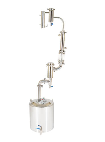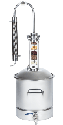 Заключительный этап очистки — сухопарник с краном для слива. На его стенках происходят повторная конденсация и переиспарения спирта. Одновременно с эффективной очисткой происходит и ароматизация напитка. (Попробуйте добавить в сухопарник цедру лимона или ароматные травы).